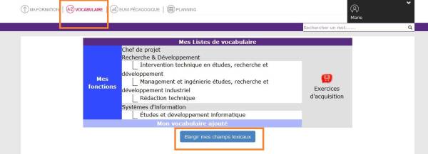Pour modifier cela, vous pouvez vous rendre sur l’onglet “Vocabulaire” et choisir “Élargir mes champs lexicaux” afin de modifier vos choix.