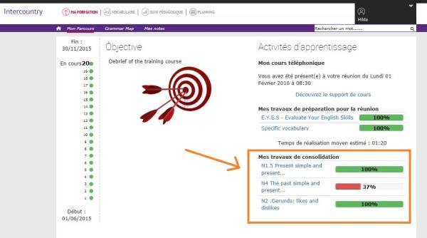 Si votre formateur constate qu’il est nécessaire de renforcer vos acquis sur une compétence ou qu’il pense opportun de vous aider à en développer une non prévue à l’origine dans votre parcours de formation, il peut ajouter des exercices spécifiques (dits de consolidation) à vos modules e-learning.