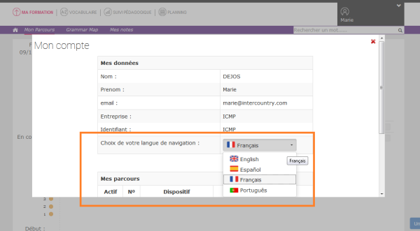 To change the navigation language, click on My Account in the upper right corner of http://www.e-exercises.com, then select the language of your choice.