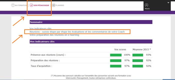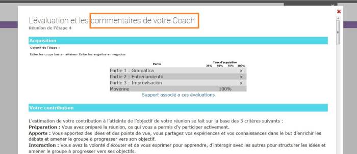 Les commentaires de votre formateur, vous sont envoyés par mails après chaque réunion, mais ils sont également accessibles depuis l’onglet “suivi pédagogique” de votre interface e-exercises.