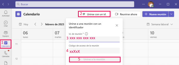 • Unirse a una reunión con el ID de la reunión desde tu aplicación de Teams en un ordenador